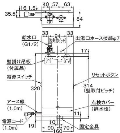 本体寸法:横幅160×高さ320×奥行87mm(設置には他に配管スペースが必要です。)